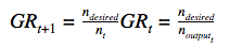 The basic motivation behind the algorithm that will be implemented is to help the user maintain their current linear bike speed, while adjust the gear ratio to maintain their desired cadence. The algorithm will multiply the current gear ratio by the the ratio between the desired cadence and the current cadence to get the new gear ratio (shown in the figure below).